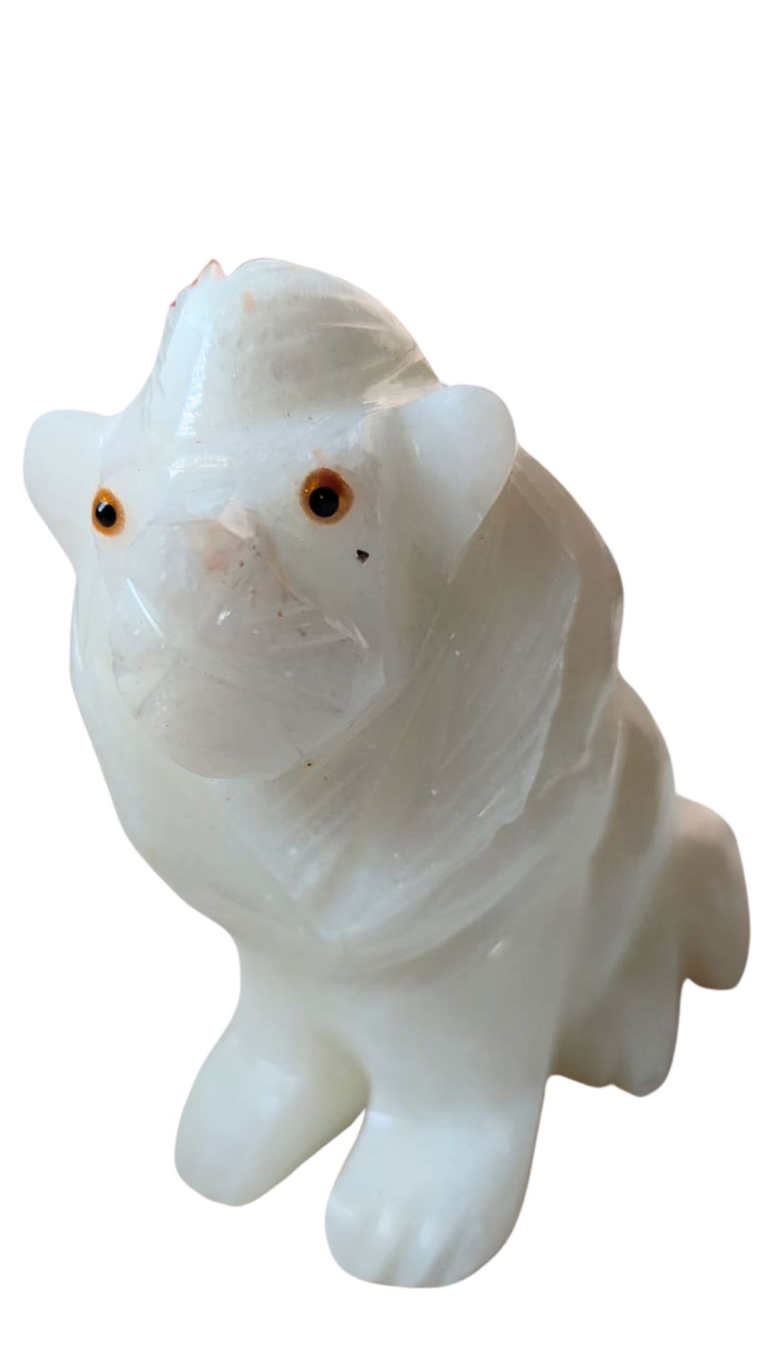 Peça feita de cristal natural em formato de leão na cor branca. Decore seu ambiente com a harmonia dos cristais!